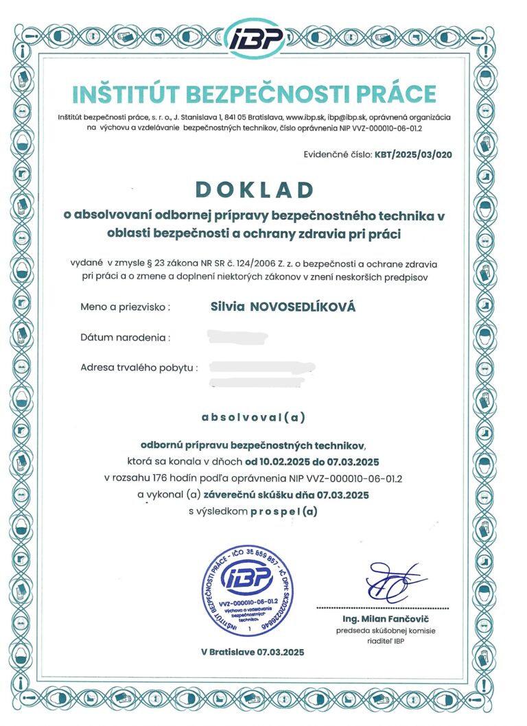 Monitoring a podpora zabezpečujú, že nastavený systém funguje aj dlhodobo, nielen v deň auditu. Pravidelne kontrolujem, či sa dodržiavajú nastavené procesy, revízie, kontroly a údržba, sledujem zmeny v legislatíve a včas upozorňujem na to, čo je potrebné upraviť. Pomáham riešiť nové situácie, zmeny na prevádzke alebo personálne zmeny tak, aby sa systém nerozpadol. Som vám k dispozícii vždy, keď si nie ste istí ďalším krokom, a dohliadam na to, aby sa chaos nevrátil späť a prevádzka zostala pod skutočnou kontrolou.